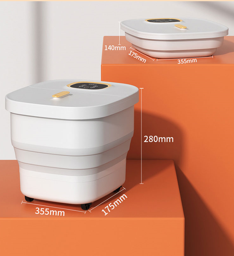 ● אמבט רגליים מתקפל – עיצוב חוסך מקום לאחסון, עשוי מחומרי PP וגומי TPE, עמיד במיוחד עם אורך חיים של עד 18,000 קיפולים. כולל גם פתח לניקוז מים.