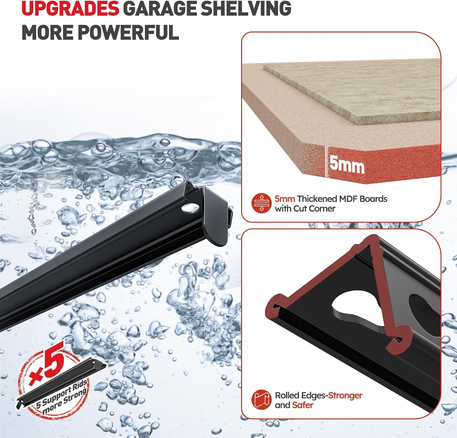 · 【מדפי מוסך לעומס כבד 1000kg】 מדפי האחסון של REIBII משתמשים בעמודים מעובה עם שוליים מגולגלים, כל מדף מתכתי עם צלעות תמיכה. עשויים ממסגרת מתכת איכותית + לוחות עץ, כך שכל מדף יכול להכיל עד 404 פאונד, עם כושר נשיאה כולל של 2020 פאונד, מה שהופך את מדפי הארון בעלי 5 קומות ליציבים וחזקים יותר וניתן לאחסן בהם יותר דברים.