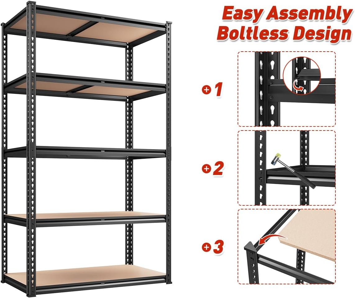 מדפי אחסון מתכת מתכווננים בני 5 קומות, יחידת מדפי אחסון למוסך למחסן, מזווה, מרתף, מדף כלים כבד